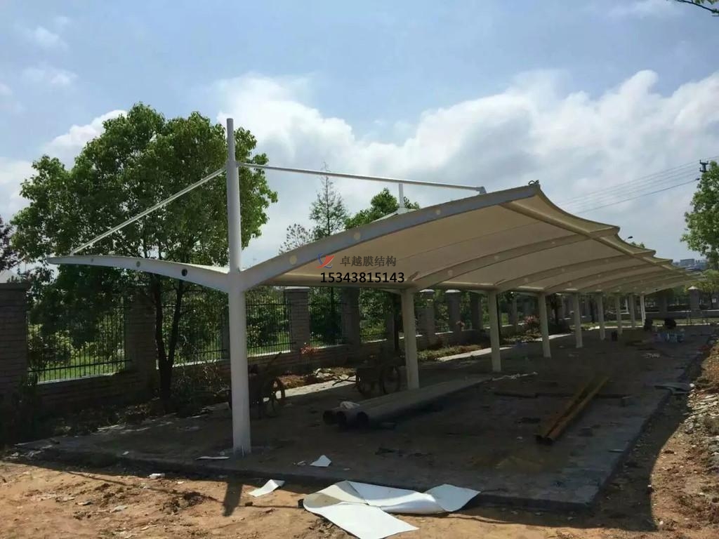 種,張力式膜結(jié)構(gòu)。這種類型的膜結(jié)構(gòu)是采用相對簡單的材料制作而成的,同時由于這種膜結(jié)構(gòu)本身具有一定的張力,因此稱為張力式膜結(jié)構(gòu)。與傳統(tǒng)的膜結(jié)構(gòu)有所差異的是,主要有兩種柔性材料構(gòu)成它的受力材料,即薄膜和索。在對膜結(jié)構(gòu)進行工程設(shè)計之前我們必須先要了解一下它的組成材料,一般來說,使用在建筑工程上的薄膜材料主要有織物類以及非織物類兩種。前者比較常用的一般主要是PVC膜材以及PTFE膜材,而比較常用的ETFE膜材是在在所有非織物類的薄膜材料中具有代表性的。而不同場地使用的停車棚因為其要求也不同,所以對選擇的膜結(jié)構(gòu)的功能以及設(shè)計壽命都有所區(qū)別。