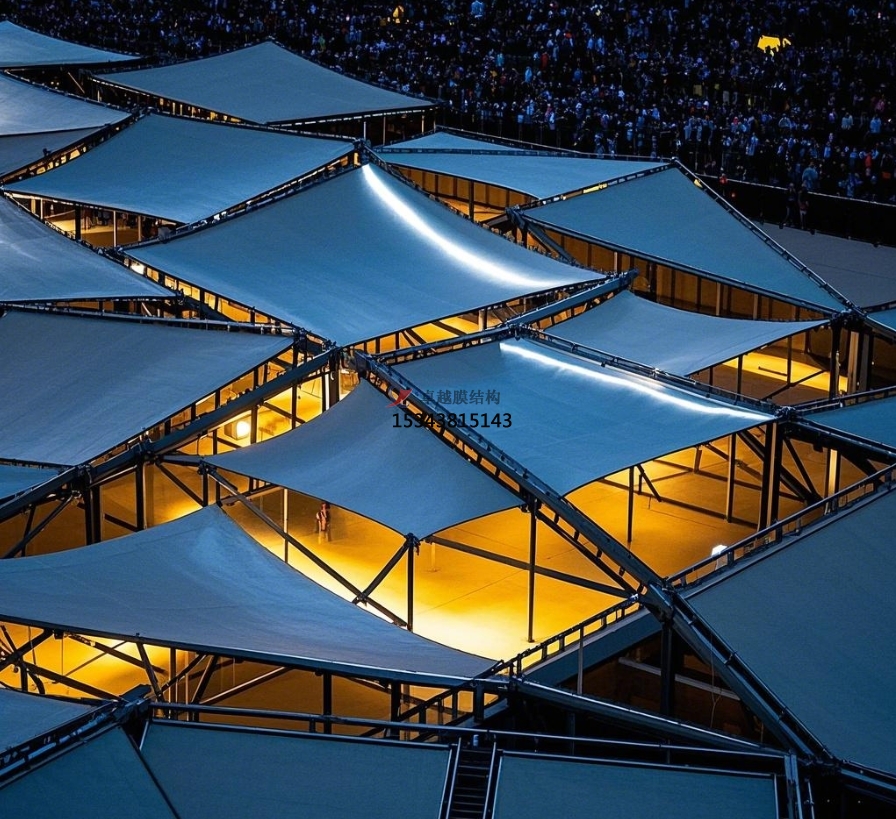 在各類演唱會、歌舞晚會、戲曲扮演等大型文藝扮演中,舞臺膜結(jié)構(gòu)的運用極為廣泛。它可以依據(jù)扮演的主題和風(fēng)格,規(guī)劃出與之相匹配的造型,為扮演營造出共同的氣氛。例如,在一場經(jīng)典歌劇的扮演中,舞臺膜結(jié)構(gòu)采用了歐式古典修建風(fēng)格的規(guī)劃,膜材外表的紋路和色彩模擬出古老修建的質(zhì)感,調(diào)配精美的燈火作用,將觀眾帶入了歌劇所描繪的時代背景中,增強(qiáng)了扮演的藝術(shù)感染力。在流行音樂演唱會上,膜結(jié)構(gòu)舞臺則常常規(guī)劃成賦有現(xiàn)代感和科技感的造型,經(jīng)過與燈火、音響等設(shè)備的配合,為歌手的扮演打造出炫酷的舞臺作用,滿足觀眾對視覺和聽覺的兩層享用。