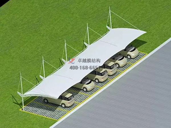 膜結(jié)構(gòu)車(chē)棚以其豐富而自由的造型。多變的支撐結(jié)構(gòu)和柔性膜材料的使用,使膜結(jié)構(gòu)的外形美觀新穎。