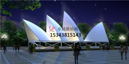 張拉膜景觀建筑排水設(shè)計依可然采用無組織排水或有組織排水方式。由于張拉膜景觀建筑的造型奇特,自由曲面,應(yīng)充分考慮造型與排水的合理方式。張拉膜景觀排水坡度要求大于一般建筑。平膜坡度15%~20%以上,雙曲膜脊度應(yīng)大于10%。同時膜面預(yù)張力1.0~2.0kN/m以上,避免膜材在雨水作用下發(fā)生較大變形,從而在膜面產(chǎn)生積水、兜水。膜面積水具有馬太效應(yīng)特點(diǎn),積水將導(dǎo)致局部凹陷變形,凹陷變形反過來加劇積水現(xiàn)象。足夠坡度、曲率和張力水平是保證排水順暢的必要條件。導(dǎo)水板、導(dǎo)水溝、落水管等張拉膜景觀設(shè)計宜與膜節(jié)點(diǎn)構(gòu)造設(shè)計協(xié)調(diào)。