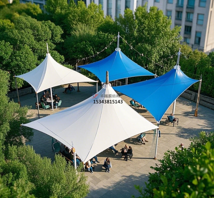 膜結(jié)構(gòu)景觀亭放置在公園的開闊草坪、花壇中央等顯眼位置,成為公園的標(biāo)志性景觀。其多樣的造型,如傘狀、蘑菇狀、飛鳥狀等,吸引著游客的目光,成為公園的視覺焦點(diǎn)。亭內(nèi)設(shè)置的座椅、茶幾等休閑設(shè)施,供游客休息、交談,部分景觀亭配備的照明設(shè)備,在夜間亮起,將景觀亭裝點(diǎn)得格外美麗,成為公園亮化景觀的一部分,為公園增添浪漫氛圍。