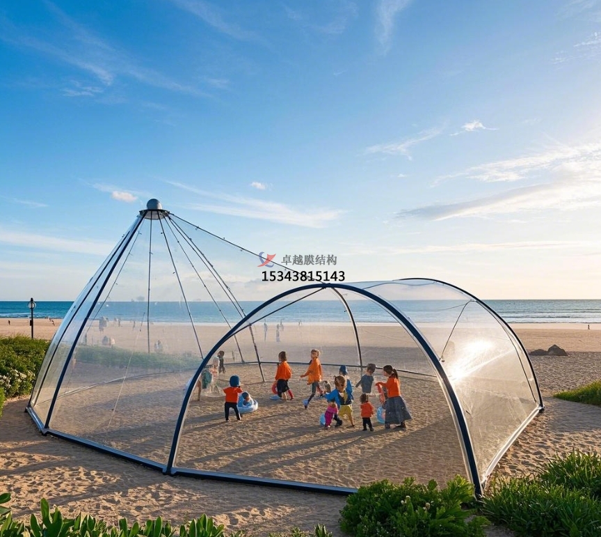 在廣場的兒童游樂區(qū),充氣式膜結(jié)構(gòu)因其輕巧安全、造型可愛的特性,成為理想的遮陽遮雨設(shè)施。膜材柔軟且具彈性,可減少兒童在游樂過程中因碰撞造成的傷害,同時(shí)選用環(huán)保無毒的膜材,充分保障兒童的健康安全。其色彩鮮艷的外觀與兒童游樂設(shè)施相匹配,營造出充滿童趣的游樂氛圍,讓孩子們盡情玩耍。