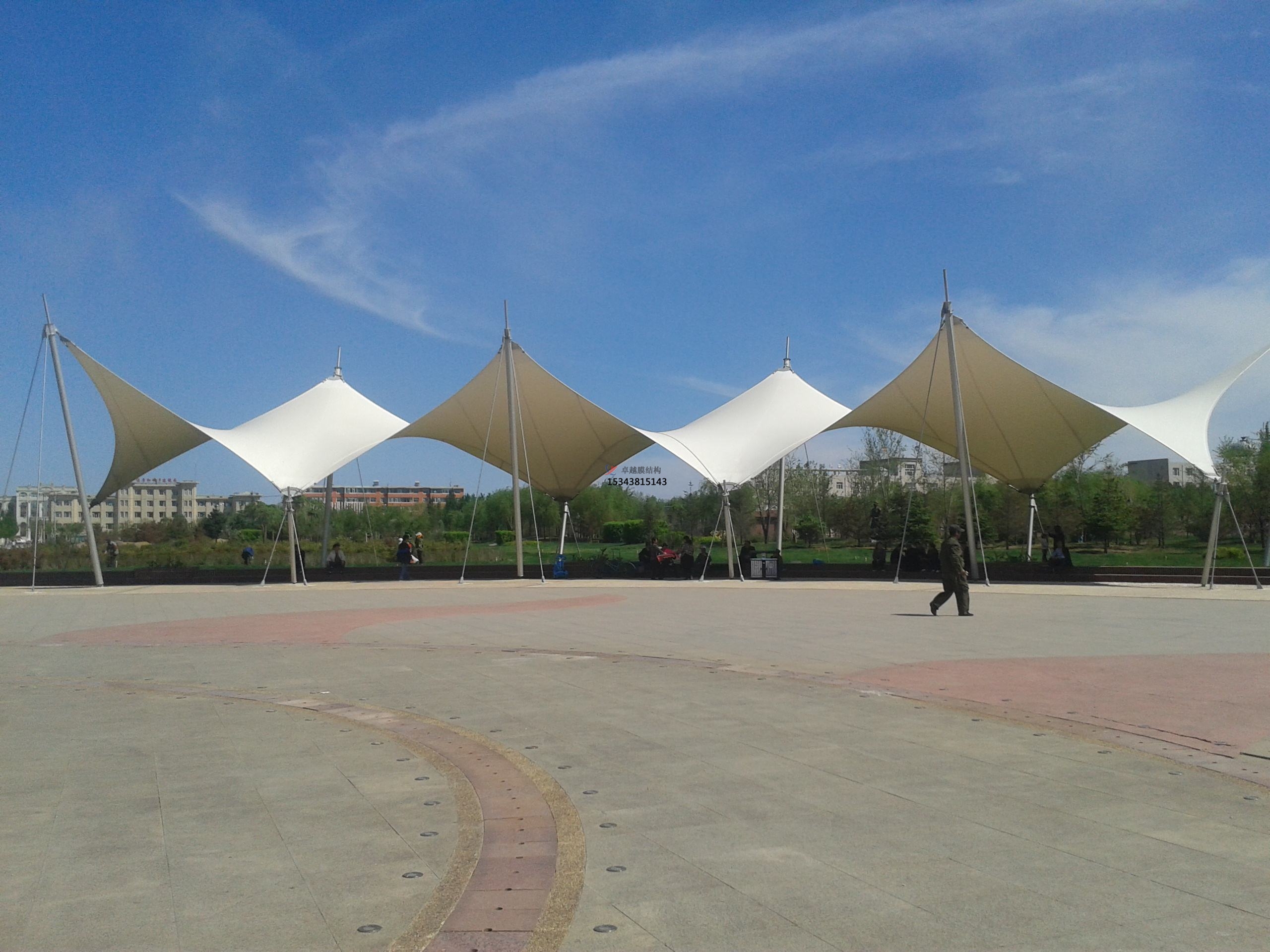 2、有效低檔紫外線,一般來說光降低商業(yè)廣場雨棚搭建溫頓是不夠的,膜結(jié)構(gòu)還能很好的阻擋紫外線,紫外線可以說是光波中的一種,可以使得肌膚變黑,膚質(zhì)變差,也能使得塑料凳物質(zhì)變質(zhì),膜結(jié)構(gòu)把紫外線阻擋之后,那么放在下面就跟放在陰涼室是一樣的了。