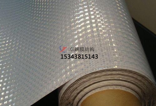 膜結(jié)構(gòu)車(chē)棚上面的膜材是一一種刀刮布,是一種化學(xué)合成材料,厚度比普通的布要厚。刀刮布的正面是光滑的,背面是粗糙的,顆粒狀比較厚分布布均勻。