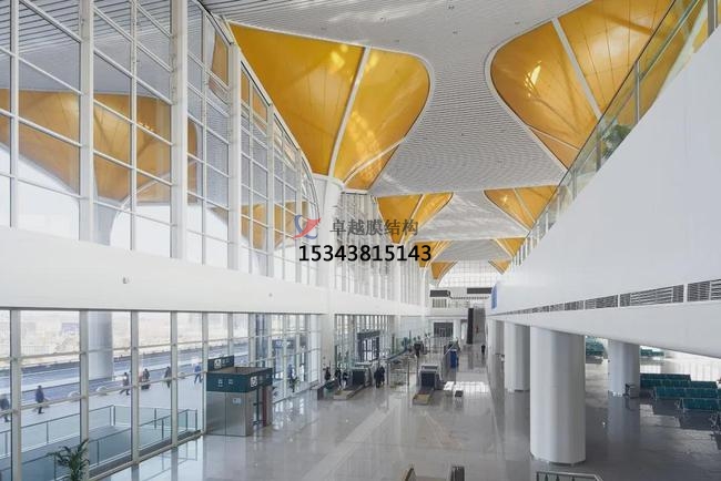 2.ETFE更大的優(yōu)勢在于它們經(jīng)過膜結(jié)構(gòu)制作公司能夠加工成任何尺寸和形狀,滿足大跨度的需求,節(jié)省了中間支撐結(jié)構(gòu);作為一種充氣后運用的資料,它能夠經(jīng)過控制充氣量的多少,對遮光度和透 光性進行調(diào)理,有效地利用自然光,節(jié)省能源,一起起到保溫隔熱效果,而且有很好的燈光效果。