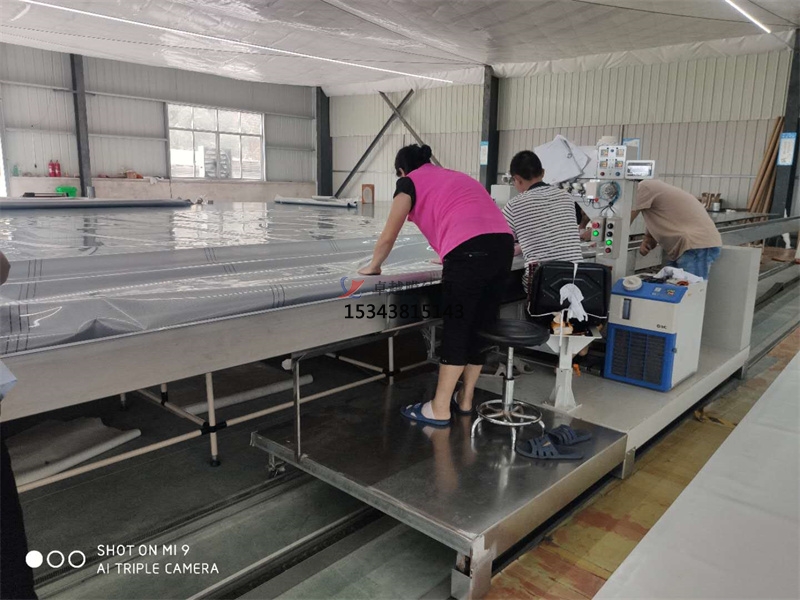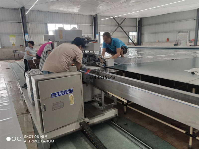 下面小編就給各位看官分享一下我廠膜材加工過程中的一組照片。 無塵焊接中,膜材在平臺固定,軌道機(jī)滑動(dòng)焊接。