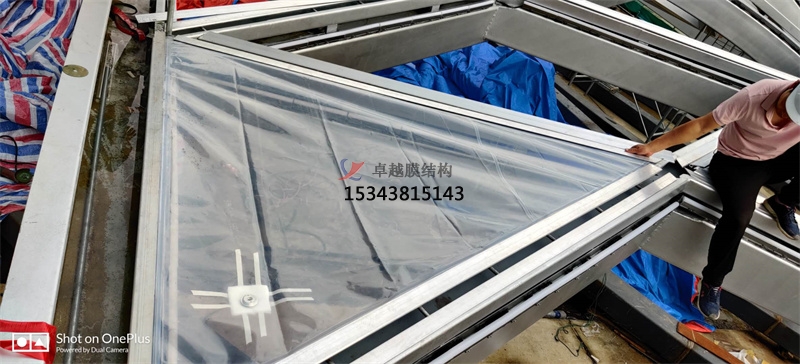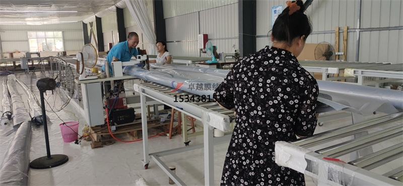 現(xiàn)場安裝測試第片膜材。帶充氣管道的項(xiàng)目。