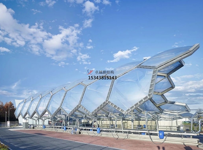 ETFE膜結構建筑通常采用鋼構件作為支撐結構,而ETFE膜材料則安裝在這些鋼構件上。這種安裝方式使得ETFE膜結構的造型可以根據(jù)鋼構件的造型而變化,從而實現(xiàn)更加靈活多變的設計。