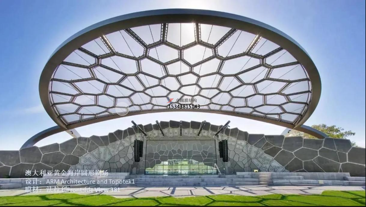 STFE不是化學(xué)成分的英文縮寫(xiě),而是膜材商品名的英文縮寫(xiě)(Structural、Transparent、Fluorinated、Envelope),其本質(zhì)是網(wǎng)格覆膜。區(qū)別在于其織物基材,不同于PVC膜材的聚酯纖維紗線,也不同于PTFE膜材的玻璃纖維紗線,而是擠壓特殊涂層的聚芳酯紗線;覆膜為特種含氟聚合物(涉及商業(yè)秘密未公開(kāi)),單面覆膜。覆膜的清晰度較好,可實(shí)現(xiàn)一定程度的透景。同時(shí),由于有織物基材提高了膜材強(qiáng)度,抗拉強(qiáng)度可達(dá)4000N/5cm。即使不加拉索,膜單元跨度一般在3m以上。