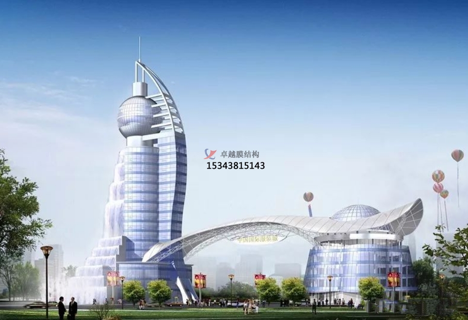 膜結(jié)構(gòu)大門作為建筑或景區(qū)入口,用來遮風(fēng)擋雨,也是景區(qū)的臉面,是景區(qū)神韻的表達,不僅要求其造型新穎,有創(chuàng)意,而且還要考慮建造材質(zhì)。