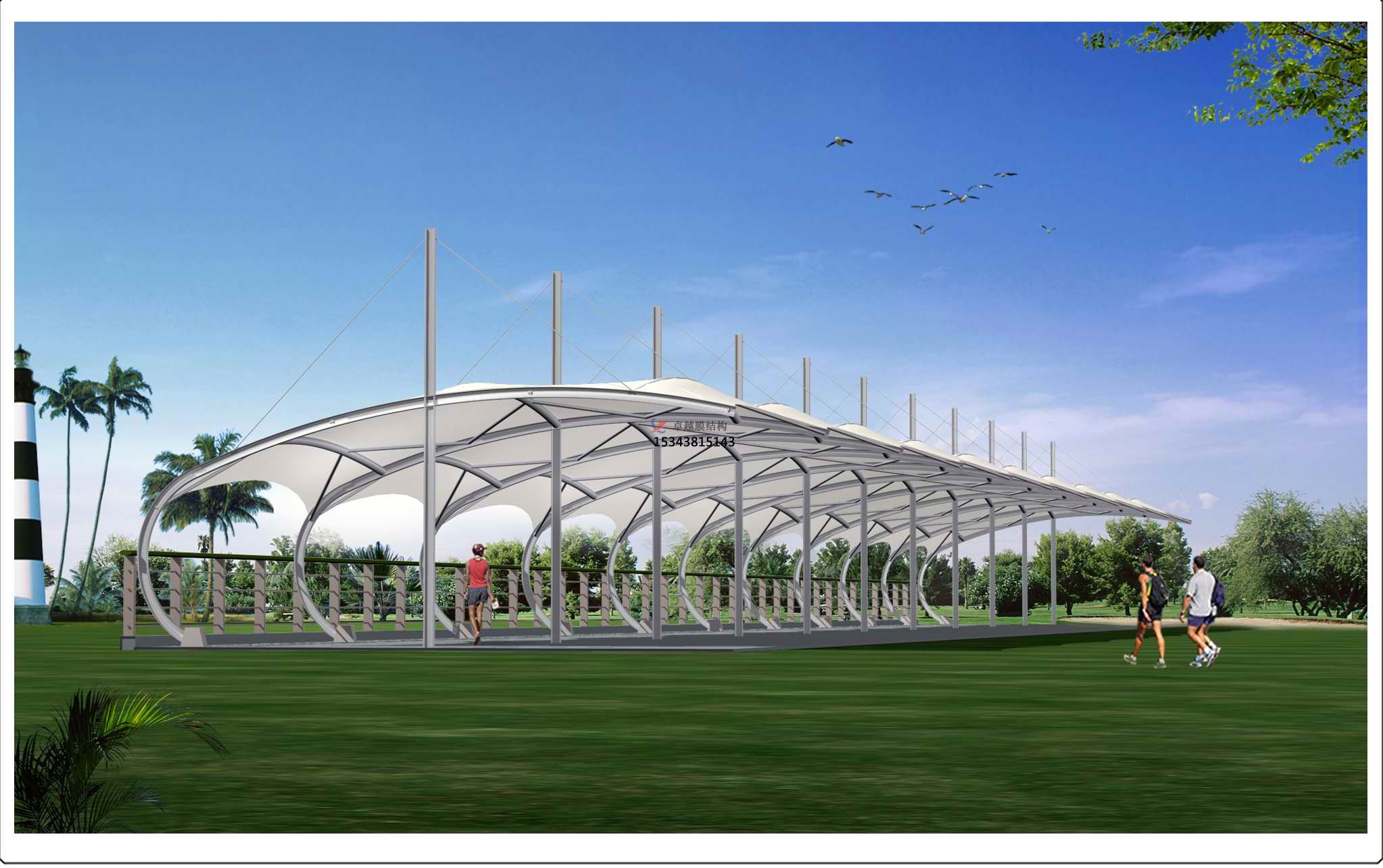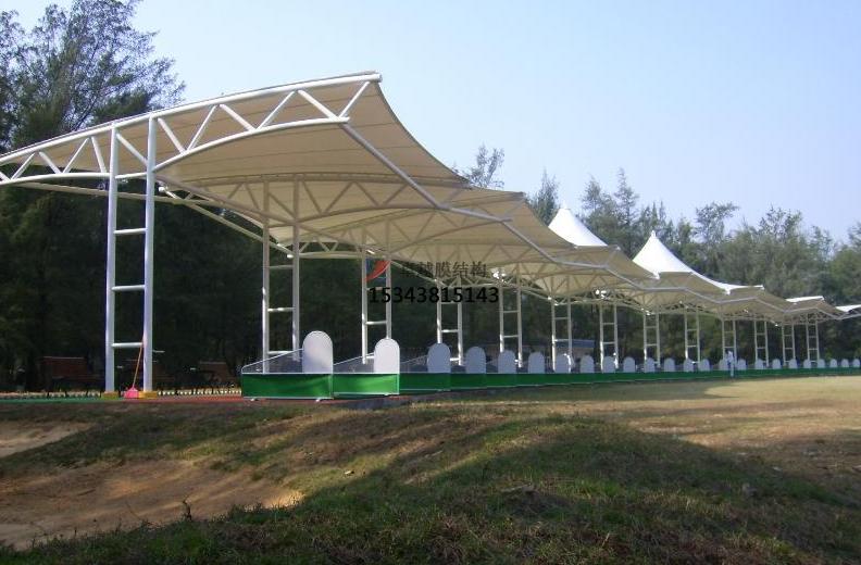 高爾夫球場(chǎng)綠草如茵青山環(huán)繞的整體環(huán)境,時(shí)尚又環(huán)保的配套設(shè)施才能更加提升其高貴品質(zhì)。膜結(jié)構(gòu)因適用廣,技術(shù)性及藝術(shù)性兼?zhèn)洌脕?lái)建設(shè)高爾夫球場(chǎng)發(fā)球臺(tái)再合適不過(guò),潔白的膜材及獨(dú)特的造型搭配,此外,因張拉膜具有自重輕的特性,使其外表看起來(lái)輕盈簡(jiǎn)約,讓前來(lái)運(yùn)動(dòng)的人們耳目一新,卸下平日工作壓力帶來(lái)的那份沉重,盡情享受身體與心靈的放松,何樂(lè)而不為呢?