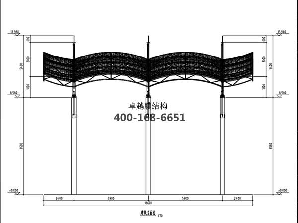 我公司設(shè)計人員的周口盛和小學膜結(jié)構(gòu)看臺/頂棚工程設(shè)計方案得到甲方確認,部分設(shè)計圖紙如下:
