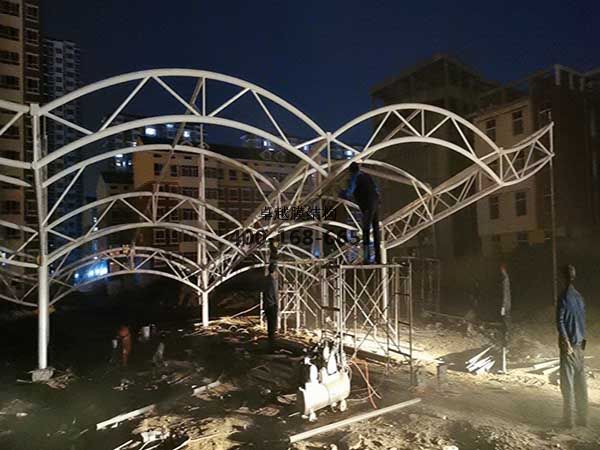 周口盛和小學膜結(jié)構(gòu)看臺/頂棚工程、鋼結(jié)構(gòu)設(shè)計、加工、運輸、安裝。