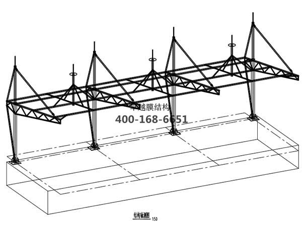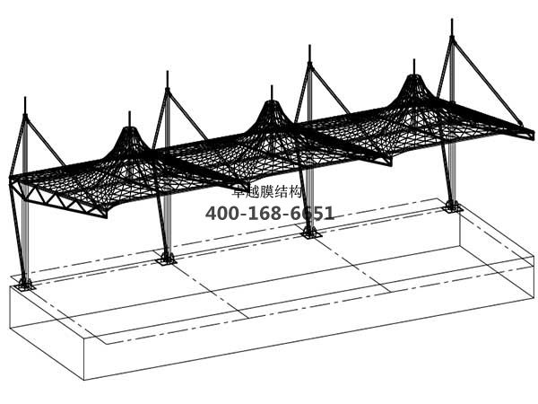 本工程膜材采用白色高端國產星益達PVDF高自潔環(huán)保建筑膜材,鋼結構采用更好的標準Q235B鋼材,表面采用酚醛底漆處理,面漆采用白色鋼結構專用快干磁漆。
