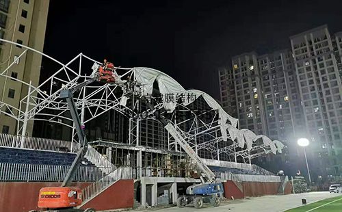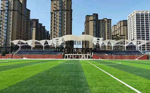 鄭州十八中膜結(jié)構(gòu)看臺/頂棚項目膜結(jié)構(gòu)、鋼結(jié)構(gòu)設(shè)計、加工、運(yùn)輸、安裝。