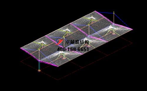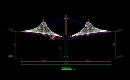 本工程膜材采用白色高端國產(chǎn)星益達(dá)PVDF高自潔環(huán)保建筑膜材,鋼結(jié)構(gòu)采用更好的標(biāo)準(zhǔn)Q235B鋼材,表面采用酚醛底漆處理,面漆采用白色鋼結(jié)構(gòu)專用快干磁漆。