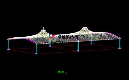 本工程膜材采用白色高端國產(chǎn)星益達PVDF高自潔環(huán)保建筑膜材,鋼結構采用更好的標準Q235B鋼材,表面采用酚醛底漆處理,面漆采用白色鋼結構專用快干磁漆。