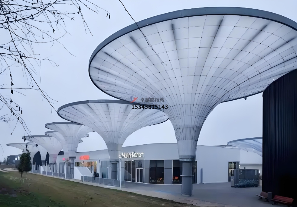 美國洛根機場 C 航站樓的 ETFE 頂篷集成太陽能電池板,發(fā)電能力覆蓋兩倍于雨棚照明需求,年減排二氧化碳 120 噸。其 2440 平方米的膜材通過智能調(diào)光系統(tǒng),可根據(jù)日照強度自動調(diào)節(jié)透光率,實現(xiàn)空調(diào)負(fù)荷降低 18%。