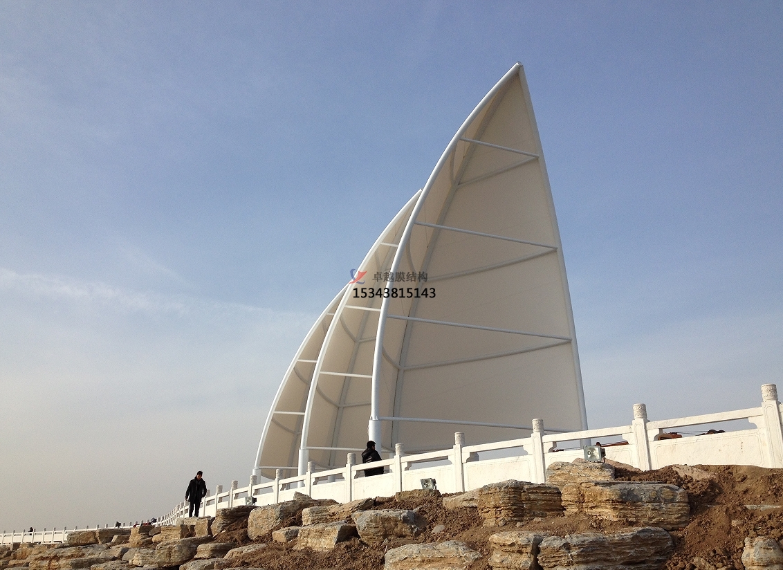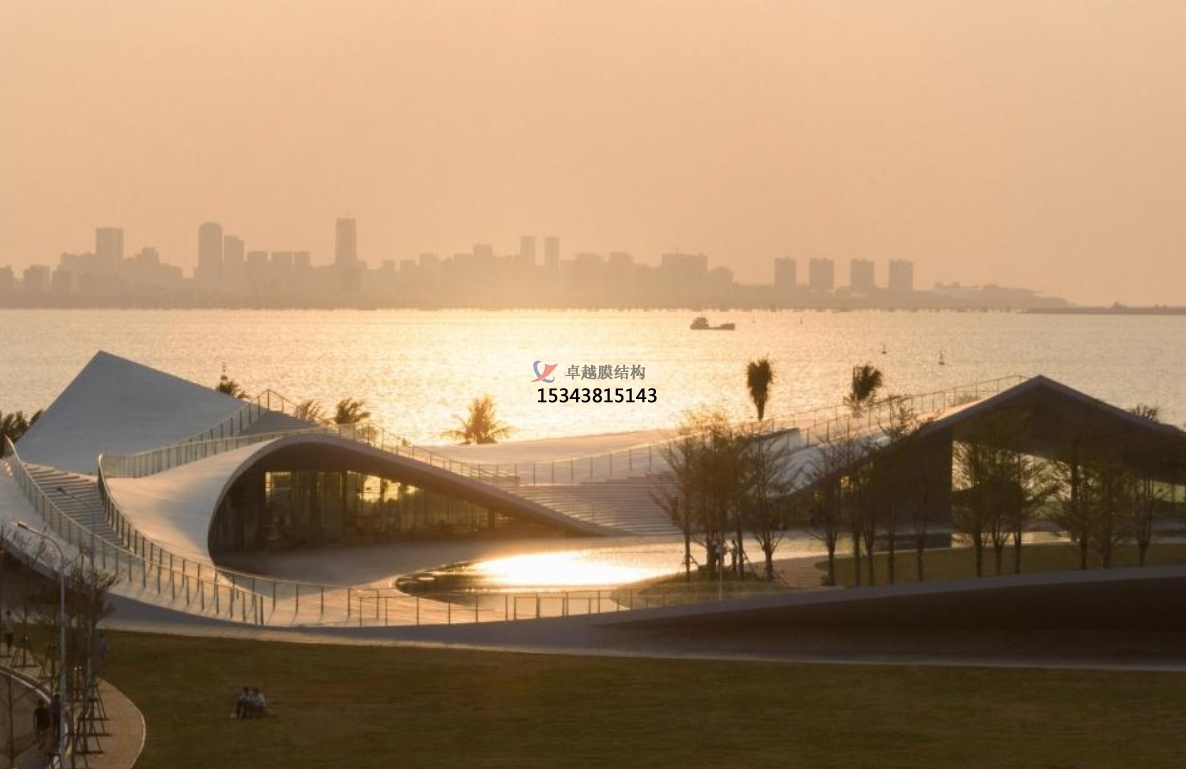 海邊的景觀膜結構最顯著的特點是其與海洋環(huán)境的和諧共生。這些結構往往采用流線型設計,模仿海浪、貝殼等自然元素,與周圍的海濱風光相得益彰。膜材料的選擇也注重透光性和耐候性,既保證了室內(nèi)光線的充足,又能抵御海邊惡劣的天氣條件,如強風、高鹽度等。
