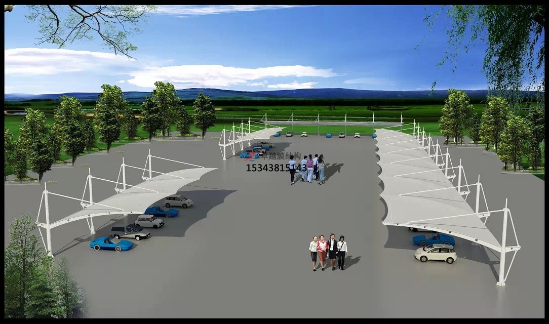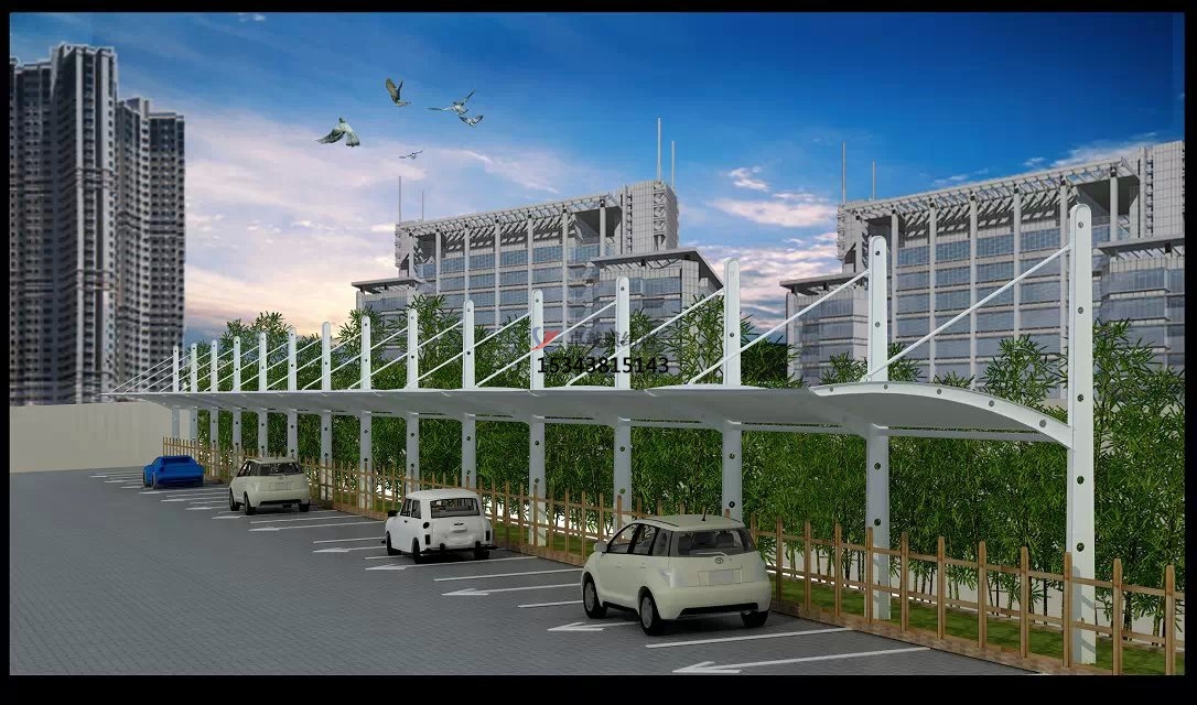 索膜結(jié)構(gòu)停車場(chǎng)的結(jié)構(gòu)特點(diǎn):其結(jié)構(gòu)特點(diǎn)主要有受力合理、輕質(zhì)高強(qiáng)、造型美觀等。它的受力通過(guò)拉索將膜材料張拉于結(jié)構(gòu)上,形成穩(wěn)定的空間雙曲張拉膜面、支承桅桿體系、支承索和邊緣索等構(gòu)成的結(jié)構(gòu)體系。膜內(nèi)預(yù)應(yīng)力的保持是結(jié)構(gòu)穩(wěn)定的關(guān)鍵,能使結(jié)構(gòu)以較小的厚度和重量承受較大的荷載,覆蓋空間大且自重輕(對(duì)比傳統(tǒng)建材),適用于各類停車場(chǎng)頂棚結(jié)構(gòu)。索膜結(jié)構(gòu)停車場(chǎng)采用的膜材料一般質(zhì)量較輕,但強(qiáng)度很高,如高強(qiáng)度聚酯纖維涂層聚氯乙烯(PVC)膜等,在滿足結(jié)構(gòu)承載能力的同時(shí),減輕了整體結(jié)構(gòu)重量,對(duì)基礎(chǔ)要求較低。其膜材柔性特質(zhì)支持自由曲面設(shè)計(jì),可定制弧形、波浪形、七字型等個(gè)性化造型,還可根據(jù)不同的場(chǎng)地和需求進(jìn)行定制,打造出各種獨(dú)特的造型,與周圍環(huán)境和諧統(tǒng)一,提升城市景觀美感。