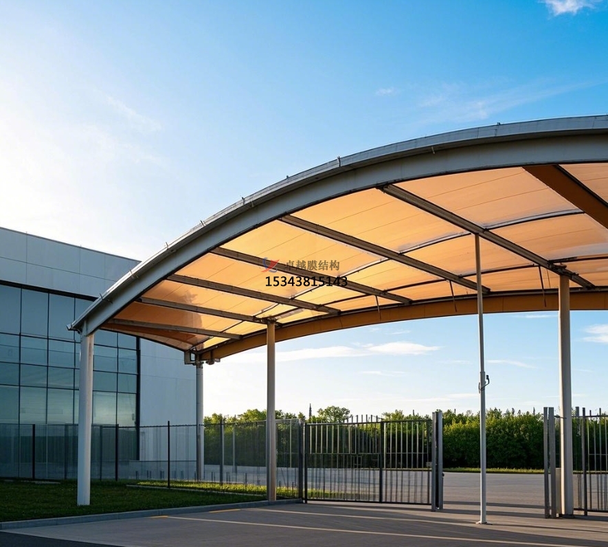 在力學(xué)結(jié)構(gòu)方面,膜結(jié)構(gòu)大門通過膜材與支撐的鋼結(jié)構(gòu)緊密配合,實(shí)現(xiàn)了堅(jiān)固與輕盈的完美結(jié)合。借助先進(jìn)的預(yù)應(yīng)力張拉技術(shù),膜結(jié)構(gòu)能夠承受較大的風(fēng)力和雪載。即使在強(qiáng)風(fēng)天氣中,膜結(jié)構(gòu)大門也能憑借自身柔性結(jié)構(gòu),巧妙地分散風(fēng)力,保持穩(wěn)定,為小區(qū)居民的安全提供堅(jiān)實(shí)保障。同時(shí),膜結(jié)構(gòu)的輕盈特性大大減輕了建筑自重,相較于傳統(tǒng)大門,對地基的壓力更小,降低了基礎(chǔ)建設(shè)成本,在一定程度上也縮短了施工周期,減少了對居民生活的影響。