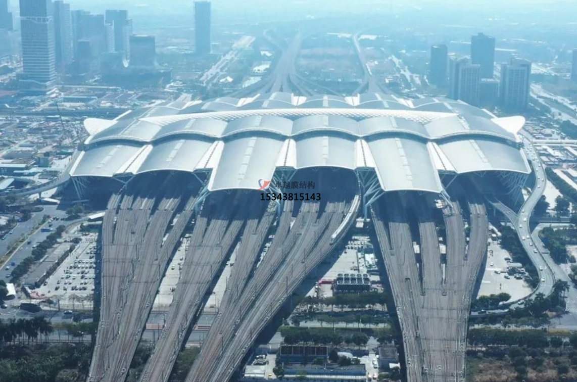 膜結(jié)構(gòu)頂棚能夠呈現(xiàn)出奇特優(yōu)美的空間效果,如盛開(kāi)的花瓣、玉蘭花蕊等形象,為高鐵站增添藝術(shù)氣息。