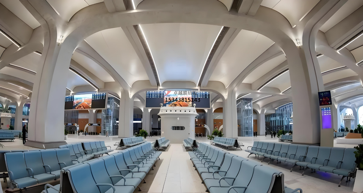 膜結(jié)構(gòu)可以通過(guò)不同的造型和組合方式,實(shí)現(xiàn)高鐵站內(nèi)部空間的靈活劃分。在一些高鐵站中,利用膜結(jié)構(gòu)設(shè)置了獨(dú)立的貴賓候車(chē)區(qū)、母嬰候車(chē)室等功能區(qū)域。這些區(qū)域既與整體候車(chē)大廳相互連通,又通過(guò)膜結(jié)構(gòu)的巧妙設(shè)計(jì)形成相對(duì)獨(dú)立的空間,滿(mǎn)足了不同旅客群體的個(gè)性化需求,提升了高鐵站的服務(wù)質(zhì)量。