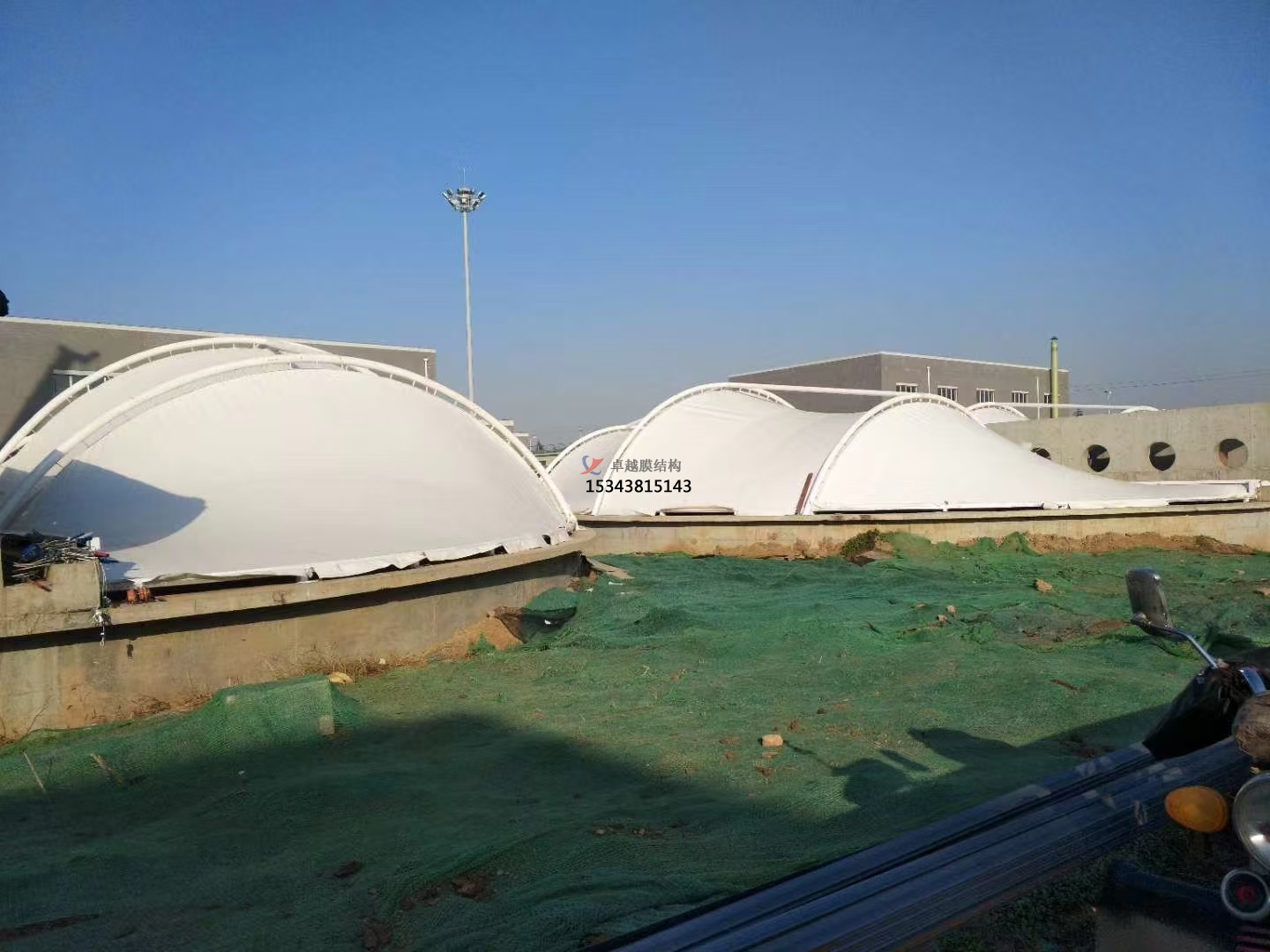 在露天的污水池上方用特殊的膜材料將其覆蓋并完全密封,使污水池中產(chǎn)生的廢臭氣體密閉在一個(gè)空間內(nèi),然后通過(guò)專門(mén)的除臭設(shè)備進(jìn)行收集和處理,從而達(dá)到減少惡臭氣體排放、改善周邊環(huán)境質(zhì)量、提高污水處理效率的目的。