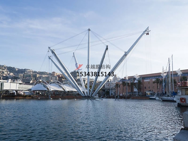 1、輕質:膜材料張力結構自重小的原因在于它依靠預應力形態(tài)而非材料來保持結構的穩(wěn)定性,從而使其自重比傳統(tǒng)建筑結構小的多,但卻具有良好的穩(wěn)定性。建筑師可以利用其輕質大跨的特點設計和組織結構細部構件,將其輕盈和穩(wěn)定的結構特性有機地統(tǒng)一起來。
