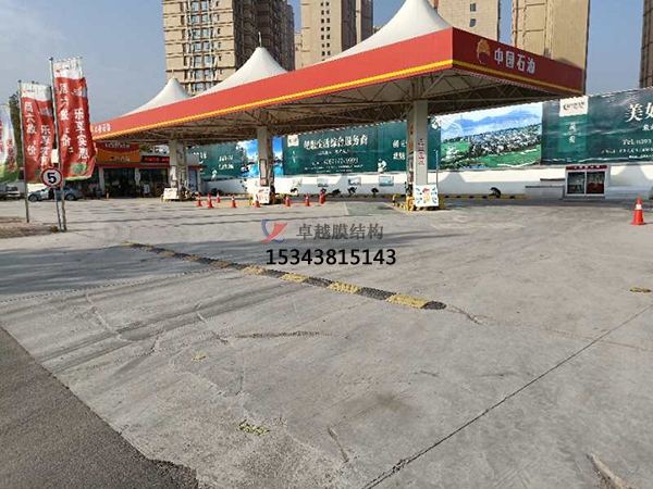 加氣站雨棚施工有較高的反射性及較低的光吸收低,并且熱傳導(dǎo)性較低,這大大程度上阻止太陽能進(jìn)入室內(nèi)。另外,膜材的半透明性保障了適當(dāng)?shù)淖匀宦⑸涔庹彰魇覂?nèi)。由于自重輕,膜建筑可以不需要內(nèi)部支撐面大跨度覆蓋空間,這使人們可以列靈活、更有創(chuàng)意地設(shè)計(jì)和使用建筑空間。