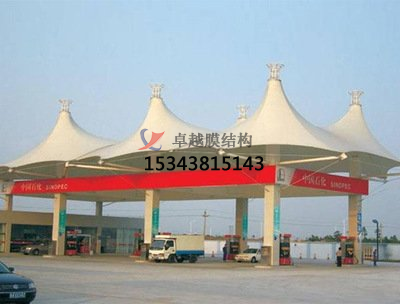 該加油站采用了先進(jìn)的張拉技術(shù),通過鋼索和支撐桿將膜結(jié)構(gòu)固定在地上,形成了寬敞明亮的加油空間。整個(gè)加油站的膜結(jié)構(gòu)采用了高強(qiáng)度聚酯纖維材料,具有高透明度、抗紫外線、防水、防火等特點(diǎn),保證了加油體驗(yàn)的安全性和舒適性。