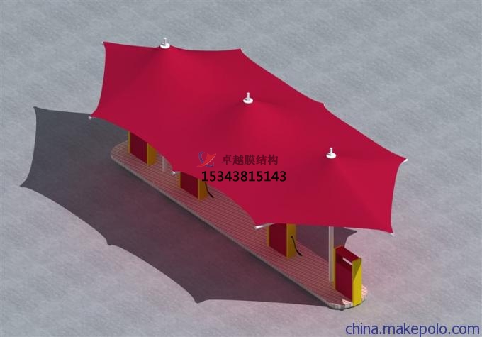 張拉膜雨棚/加氣站頂蓋主要采用鋼結(jié)構(gòu)做骨架支撐結(jié)構(gòu),高自潔建筑膜材做屋面材料防水材料,設(shè)計美觀大方,結(jié)構(gòu)安全穩(wěn)定,使用壽命可達15年到30年。廣泛應(yīng)用在于各類大小加油站和加氣站。卓越張拉膜雨棚工程是較早年開展張拉膜設(shè)計施工的專業(yè)廠家,擁有各類張拉膜設(shè)計施工總承包資質(zhì),現(xiàn)在為大家介紹一下我司在鄭州周邊地區(qū)完工的一批張拉膜雨棚工程案例,我司先后在鄭州附近地區(qū)完工了中國石化鄭州柳林加油站張拉膜雨棚頂蓋、鄭州東服務(wù)區(qū)中國石化加油站張拉膜雨棚遮陽篷、中國石油加油站(天然氣股份有限公司河南鄭州第十加油站)張拉膜雨棚等一批完工項目,給大家簡介一下:
