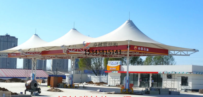 加油站膜結(jié)構(gòu),一般是指安裝在加油站的膜結(jié)構(gòu)頂棚。膜結(jié)構(gòu)頂棚因其自重輕,具有良好的受力特點(diǎn),所以成為大跨度空間結(jié)構(gòu)的主要形式之一,加油站膜結(jié)構(gòu)也屬于其范疇。