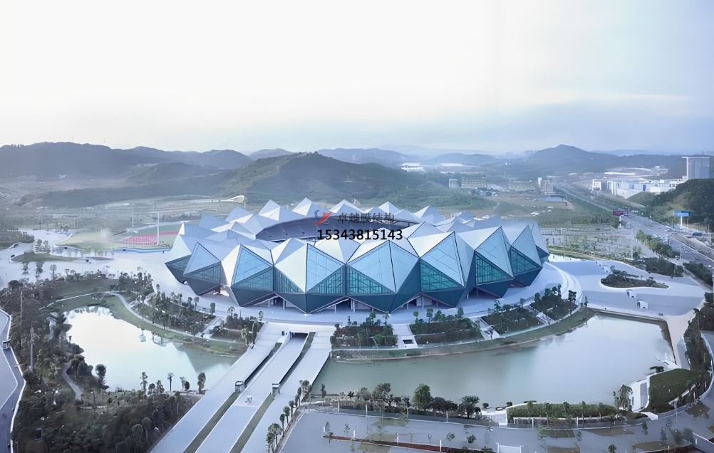 深圳大運(yùn)會體育中心一場兩館采用空間折板結(jié)構(gòu),外觀類似“鉆石”。外層采用陽光板及玻璃幕墻,內(nèi)層采用透光率高、吸音率強(qiáng)、自潔性能好的網(wǎng)格內(nèi)膜材料。深圳大運(yùn)會體育中心的網(wǎng)格內(nèi)膜面積超過10萬平方米。