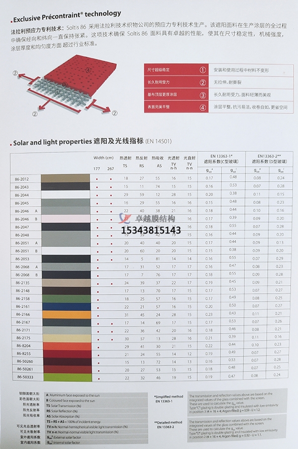 法拉利膜材十多年來(lái),法拉利(PVDF)表面處理的復(fù)合膜材被應(yīng)用在全世界重要的織物建筑工程中?,F(xiàn)在,第代膜材再次確認(rèn)了這一出眾材料性能的更新發(fā)展。法拉利研發(fā)了第代材料正是為了滿足建筑師和業(yè)主在新世紀(jì)之初對(duì)于織物建筑提出的要求。這一 全新的膜材得益于更新的科研技術(shù),即將PVDF和硬化介體完美地結(jié)合。這種特殊的結(jié)合明顯地提高了材料的機(jī)械強(qiáng)度、使用壽命,并能長(zhǎng)期保持織物建筑的原始 美觀。第代膜材在積累了10多年的經(jīng)驗(yàn)的基礎(chǔ)上,可以提供專業(yè)保證。法拉利現(xiàn)在能夠根據(jù)要求和每個(gè)項(xiàng)目的具體情況,提供12年質(zhì)量保證 (PRECONTRAINT702除外)。