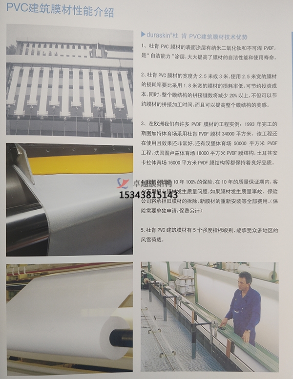 德國(guó)杜肯duraskin的PVC-PVDF膜材有優(yōu)勢(shì)如下: