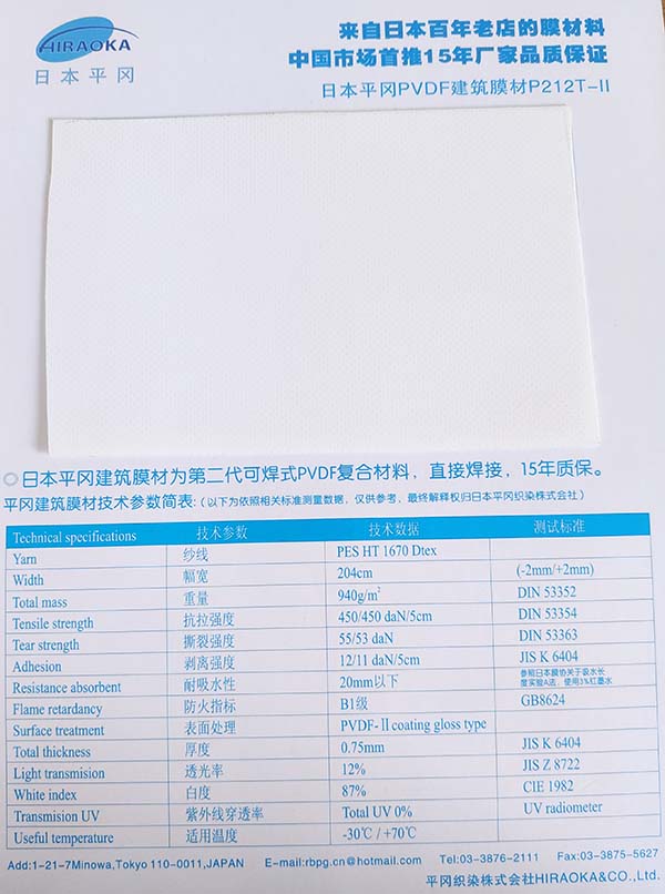 日本平岡建筑膜材中國(guó)市場(chǎng)很好的推系列: