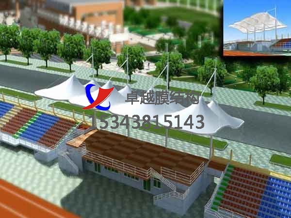 張拉膜看臺主要用于各類地方體育場主席臺雨棚,各類學校體育場看臺雨棚遮蓋,我公司是國內(nèi)較早從事大懸挑張拉膜結構看臺設計施工的專業(yè)廠家,下面介紹一下我們在淮安市周邊縣市完工的一些張拉膜看臺設計施工案例,我公司先后在淮安周邊承接了淮安信息職業(yè)技術學院張拉膜看臺雨棚、炎黃職業(yè)技術學院張拉膜看臺罩棚、江蘇護理職業(yè)學院張拉膜看臺遮陽棚等設計施工項目,簡介如下: