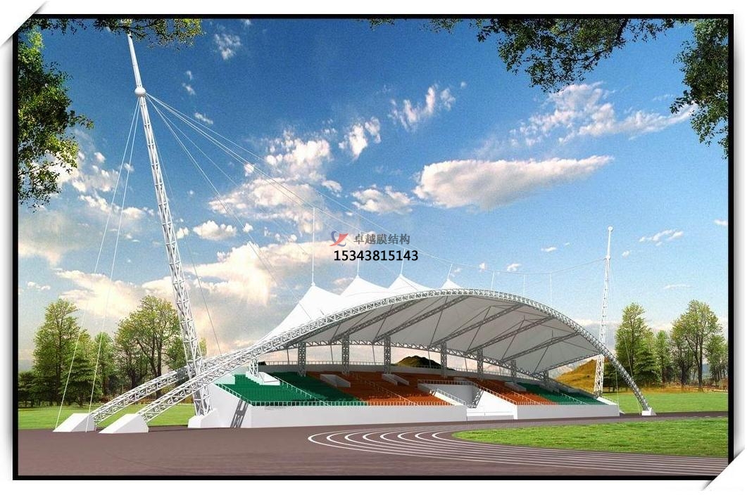 看臺膜結(jié)構(gòu)的應(yīng)用場景較為廣泛,常見于體育場館、學(xué)??磁_和景觀融合中。體育場館如德國慕尼黑安聯(lián)競技場(Allianz Arena)以ETFE膜營造動態(tài)光影效果,卡塔爾體育場結(jié)合鋼索桅桿實(shí)現(xiàn)無柱大空間;學(xué)校看臺如內(nèi)蒙古科爾沁左翼后旗實(shí)驗(yàn)學(xué)校、咸陽中學(xué)等項(xiàng)目采用膜結(jié)構(gòu)遮陽棚,兼顧耐久性與審美需求;景觀融合如泰安汶河景區(qū)船帆膜結(jié)構(gòu)、鄂爾多斯西山公園張拉膜,將功能性與自然景觀有機(jī)統(tǒng)一。膜結(jié)構(gòu)看臺通過材料創(chuàng)新與精密工程,實(shí)現(xiàn)了功能、美學(xué)與經(jīng)濟(jì)的平衡,正逐步成為現(xiàn)代體育及公共設(shè)施的主流選擇。