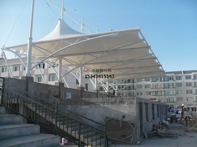 張拉膜看臺(tái)主要用于各類地方體育場(chǎng)主席臺(tái)雨棚,各類學(xué)校體育場(chǎng)看臺(tái)雨棚遮蓋,我公司是國(guó)內(nèi)較早從事大懸挑張拉膜結(jié)構(gòu)看臺(tái)設(shè)計(jì)施工的專業(yè)廠家,下面介紹一下我們?cè)谖錆h周邊縣市完工的一些張拉膜看臺(tái)設(shè)計(jì)施工案例,我公司先后在武漢周邊承接了武漢外國(guó)語(yǔ)學(xué)??磁_(tái)雨棚、武漢市建設(shè)學(xué)校張拉膜張拉膜看臺(tái)罩棚、武漢楓葉國(guó)際學(xué)校張拉膜看臺(tái)遮陽(yáng)棚張拉膜看臺(tái)遮陽(yáng)棚等設(shè)計(jì)施工項(xiàng)目,簡(jiǎn)介如下: