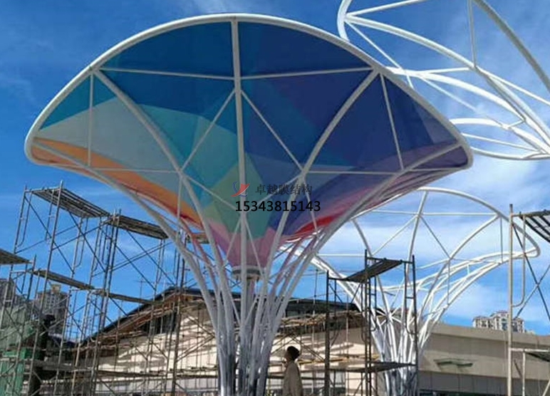 索膜結(jié)構(gòu)建筑施工與建造難點(diǎn):其在施工中精度要求嚴(yán)苛,索網(wǎng)節(jié)點(diǎn)定位誤差需控制在毫米級(jí)(如武漢光谷網(wǎng)球中心管內(nèi)預(yù)應(yīng)力桁架張拉),大型項(xiàng)目需分步張拉(如無(wú)錫奧體中心分12步提升索網(wǎng))。在特殊工藝要求中,膜片熱合縫寬度需≥40mm(P類膜材)以保證強(qiáng)度,現(xiàn)場(chǎng)焊接環(huán)境(濕度/溫度)直接影響焊縫質(zhì)量。高空作業(yè)也有風(fēng)險(xiǎn),大跨度屋蓋常需大型吊裝設(shè)備,索膜張拉過(guò)程存在失穩(wěn)風(fēng)險(xiǎn),施工安全管控難度高。