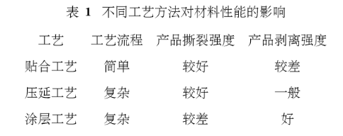 1、貼合法、壓延法、涂層法對使用性能的影響比較: