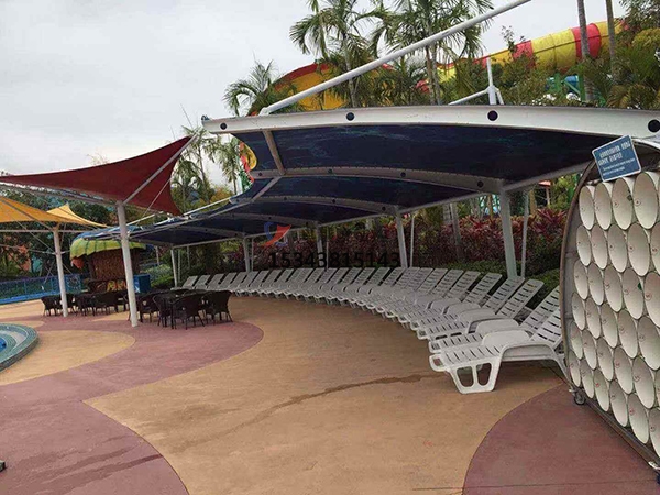 藝術(shù)性:除了一般雨蓬不行比較的有用、經(jīng)用、遮風(fēng)擋雨的功用外,膜結(jié)構(gòu)雨蓬更是一座雕塑,一件藝術(shù)品,給人美的視覺(jué)享受。其柔美,其曲線,其剛?cè)岵?jì),其豐厚造型,其潔白無(wú)瑕,讓人眼前一亮,回味悠長(zhǎng)。