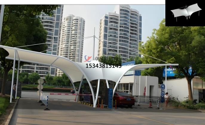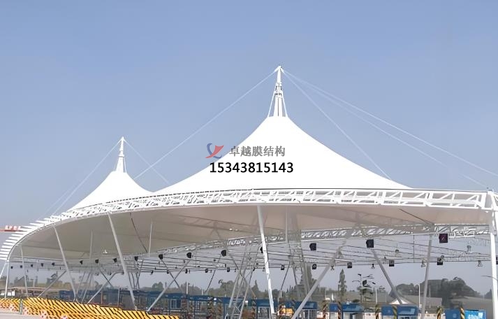 膜結(jié)構(gòu)出入口類型:地下車庫(kù)膜結(jié)構(gòu)出入口,大門膜結(jié)構(gòu)出入口,停車場(chǎng)出入口膜結(jié)構(gòu)收費(fèi)亭。地下車庫(kù)膜結(jié)構(gòu)出入口的功能是替代傳統(tǒng)雨棚,遮陽(yáng)擋雨,提升車庫(kù)實(shí)用性。優(yōu)點(diǎn)則是可拆裝重復(fù)使用(綠色環(huán)保)、自潔性強(qiáng)(雨水沖洗即可清潔)、抗老化(壽命 15 年以上),主要應(yīng)用場(chǎng)景為住宅、商場(chǎng)、交通樞紐的地下車庫(kù)。大門膜結(jié)構(gòu)出入口的功能是兼顧遮陽(yáng)防雨與景觀裝飾,提升建筑形象。優(yōu)點(diǎn)是造型新穎(如流線型、雕塑感設(shè)計(jì))、透光性好(減少照明能耗)、自重輕(抗震性強(qiáng))。應(yīng)用場(chǎng)景通常是小區(qū)、景區(qū)、學(xué)校、商業(yè)綜合體的主入口。停車場(chǎng)出入口膜結(jié)構(gòu)收費(fèi)亭的功能是作為收費(fèi)管理設(shè)施,兼具功能性與美觀性,優(yōu)點(diǎn)則是施工快捷、大跨度無(wú)柱設(shè)計(jì)、抗風(fēng)抗雪能力強(qiáng)。應(yīng)用場(chǎng)景通常是公路收費(fèi)站、景區(qū)停車場(chǎng)、物流園區(qū)。