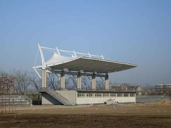 張拉膜看臺(tái)主要用于各類地方體育場主席臺(tái)雨棚,各類學(xué)校體育場看臺(tái)雨棚遮蓋,我公司是國內(nèi)較早從事大懸挑張拉膜結(jié)構(gòu)看臺(tái)設(shè)計(jì)施工的專業(yè)廠家,下面介紹一下我們在寧波市周邊縣市完工的一些張拉膜看臺(tái)設(shè)計(jì)施工案例,我公司先后在寧波周邊承接了寧波職業(yè)技術(shù)學(xué)院張拉膜看臺(tái)雨棚、寧波城市職業(yè)技術(shù)學(xué)院張拉膜看臺(tái)罩棚、浙江醫(yī)藥高等??茖W(xué)校張拉膜看臺(tái)遮陽棚等設(shè)計(jì)施工項(xiàng)目,簡介如下: