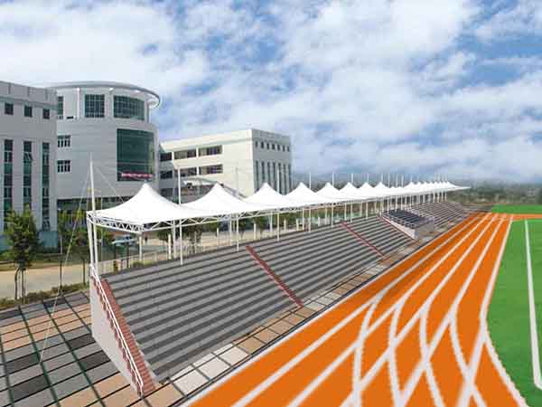 張拉膜看臺主要用于各類地方體育場主席臺雨棚,各類學校體育場看臺雨棚遮蓋,我公司是國內(nèi)較早從事大懸挑張拉膜結(jié)構看臺設計施工的專業(yè)廠家,下面介紹一下我們在吉安市周邊縣市完工的一些張拉膜看臺設計施工案例,我公司先后在吉安周邊承接了井岡山大學張拉膜看臺雨棚、吉安職業(yè)技術學院張拉膜看臺罩棚等設計施工項目,簡介如下: