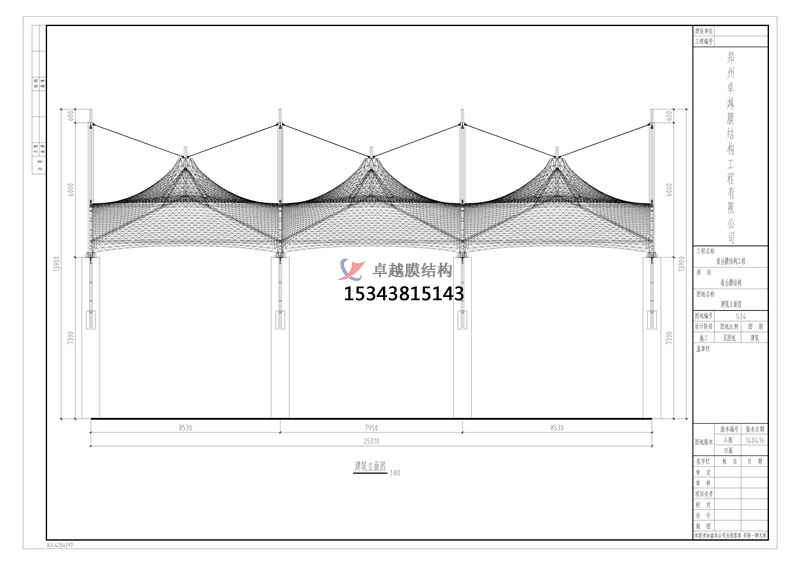 膜結(jié)構(gòu)看臺(tái)設(shè)計(jì)正立面圖。