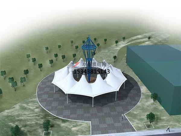 3、膜建筑屋面重量僅為常規(guī)鋼屋面的1/30,這就降低了墻體和基礎的造價。同時膜建筑奇特的造型和夜景結果有顯明的“建筑可識性”和商業(yè)效應,其價格效益比更高。