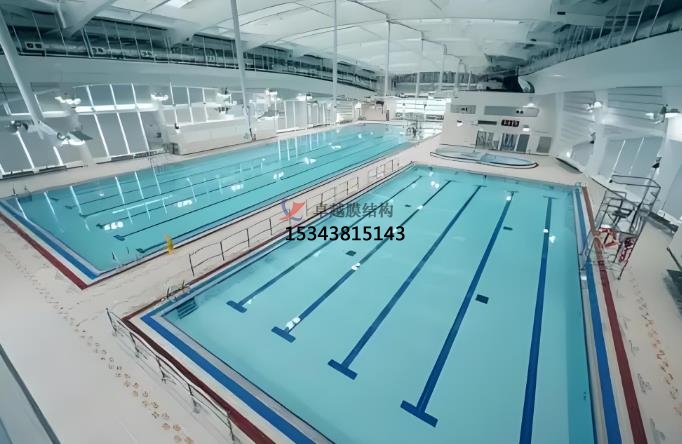 優(yōu)勢介紹:膜結構游泳館造型豐富多樣。膜結構游泳館以其流線型的外觀和豐富多彩的膜面圖案,成為城市中一道亮麗的風景線。內部空間開闊,無柱式設計不僅提升了視覺效果,更為游泳比賽、訓練及休閑娛樂活動提供了充足的自由度。如杭州游泳健身中心采用波浪型的白色雙層骨架膜結構屋面,能體現(xiàn)出游泳運動特色,成為城市的標志性建筑。膜結構游泳館可以創(chuàng)造出無柱的大空間,使泳池區(qū)視野開闊,為游泳者提供更寬敞的活動空間,也便于對游泳館進行功能布局和設施配置。膜結構游泳館采用氣承式膜結構,無需傳統(tǒng)鋼筋混凝土支撐,僅依靠氣壓支撐起整個場館,大幅降低了建筑材料的使用,符合綠色低碳的發(fā)展理念。此外,膜材料具有良好的透光性,能充分引入自然光,減少白天對人工照明的依賴,降低能源消耗,實現(xiàn)節(jié)能環(huán)保。