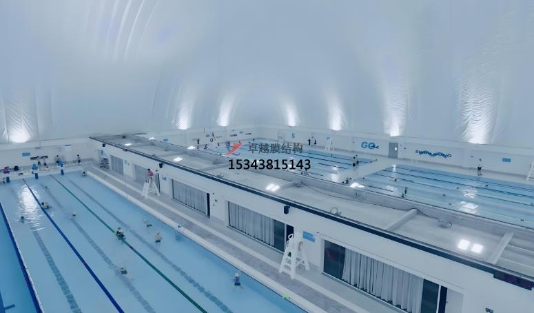 膜結構游泳館具有良好的保溫隔熱性能,同時膜結構更有利于空氣流通和污染控制,有效減少氯氣、異味等問題,提升整體舒適度,且能有效阻擋外界熱量傳入或傳出,穩(wěn)定館內溫度,為游泳者營造舒適的環(huán)境,同時也降低了空調等設備的能耗。膜結構游泳館的建設周期短,成本較低。氣膜建筑修建迅速,既環(huán)保節(jié)能又恒溫防水防潮,在整體建筑環(huán)節(jié)中不應用一磚一瓦,節(jié)約了大多數(shù)的建筑成本膜結構的加工制作可在工廠完成,現(xiàn)場安裝速度快,與傳統(tǒng)建筑相比,能大大縮短建設周期,盡快投入使用。膜結構游泳館場館內配備24小時智能檢測系統(tǒng),實時監(jiān)測空氣質量、溫度和濕度,確保泳池水質清澈、空氣清新,讓每一位泳者都能暢享健康舒適的運動體驗。膜材具有良好的耐候、防水性能,不會像傳統(tǒng)鋼結構那樣出現(xiàn)場館銹蝕的問題。氣膜游泳館的頂部一般采用弧形設計,水汽不易凝結,因此膜面也不會發(fā)生霉變。